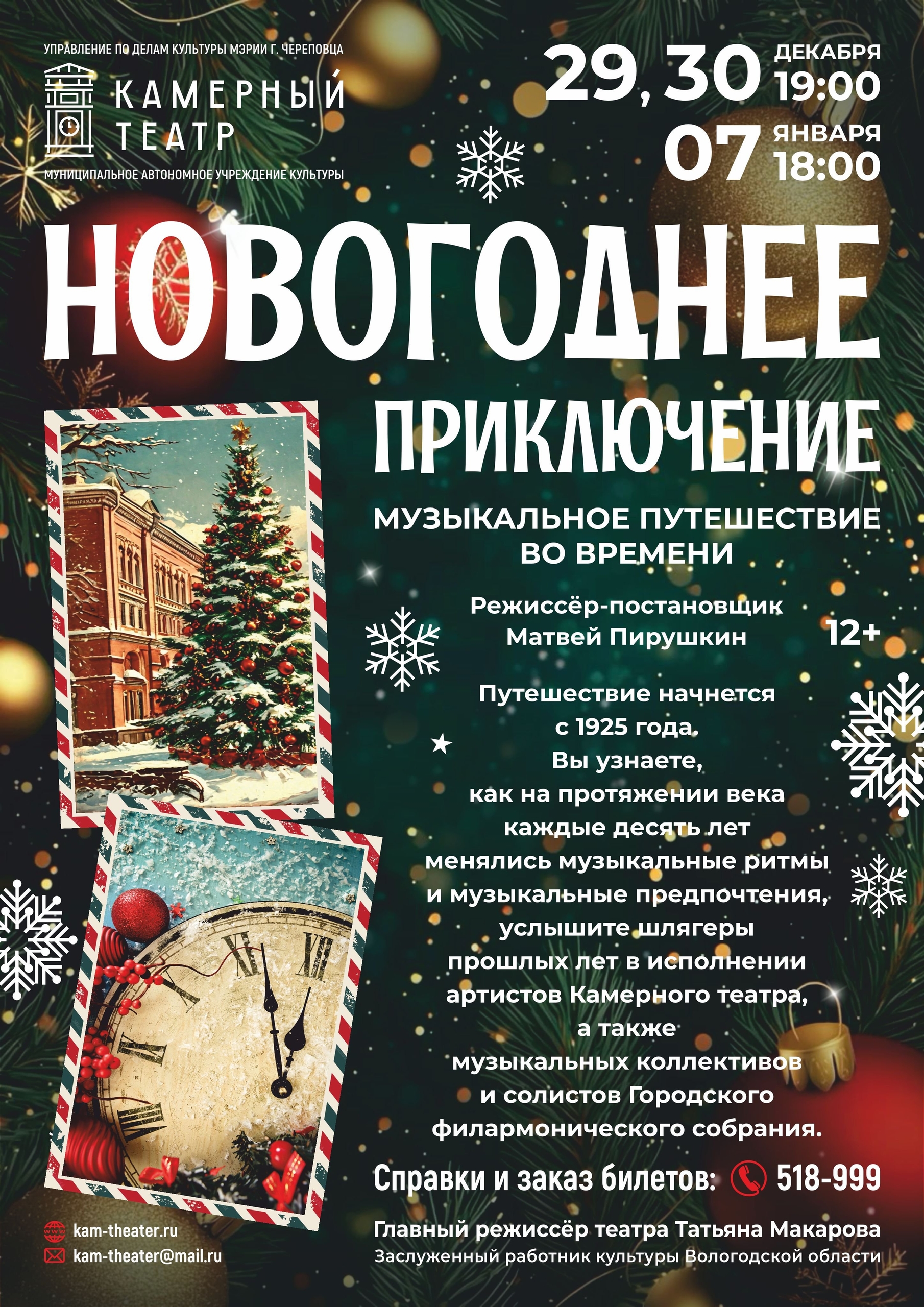 29 и 30 декабря в 19.00, 7 января в 18.00 приглашаем в Камерный театр за новогодним настроением ! Вас ждёт необычное «Новогоднее приключение»[12+] протяжённостью в сто лет!